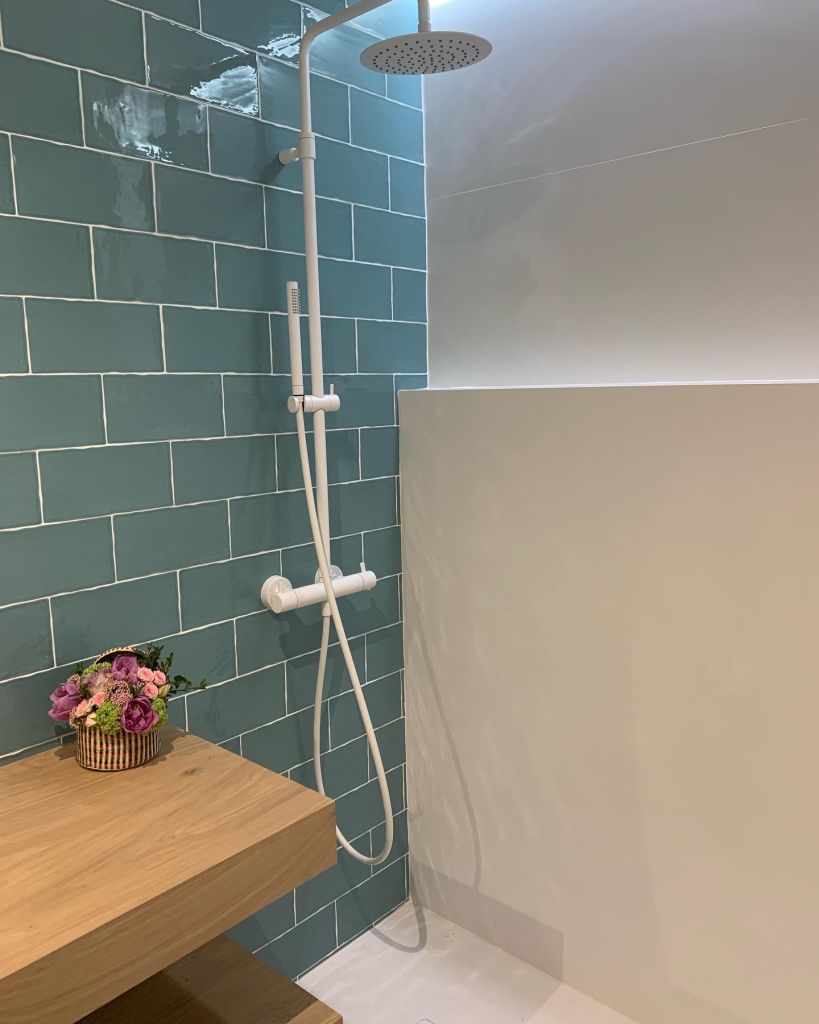 El baño ha ganado espacio y comodidad al sustituir la bañera por un plato de ducha y eliminar el bidé. Además, hemos conseguido aún más amplitud visual al utilizar revestimientos de color claro, dando protagonismo a la zona de lavabo con este azulejo tan original. El quiebro de la pared ha sido aprovechado para ejecutar las hornacinas que tanto nos gustan.