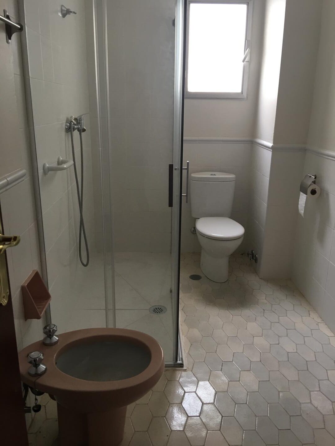 En cuanto al baño principal, para darle más amplitud visualmente, reubicamos el lavabo y espejo colocándolos frente a la puerta, dejando el acceso más despejado con la ducha a la derecha y el inodoro prácticamente escondido detrás de esta. Además de los dos dormitorios y el baño situados en el pasillo, que se destinarían a las visitas de familiares, la vivienda contaba también con otra habitación y aseo anexo, pero cuyo acceso era desde la cocina. Decidimos unir ambas estancias dándoles entrada desde el vestíbulo, para construir un estudio con gran aprovechamiento de los espacios para estanterías de libros y armarios empotrados.