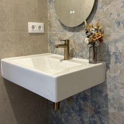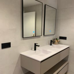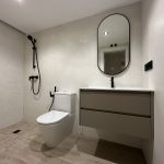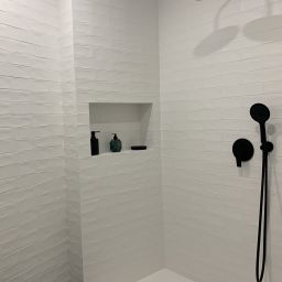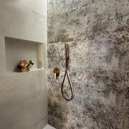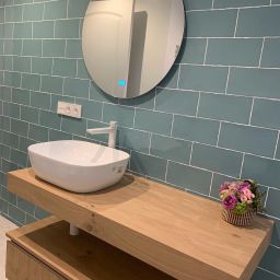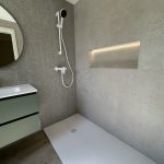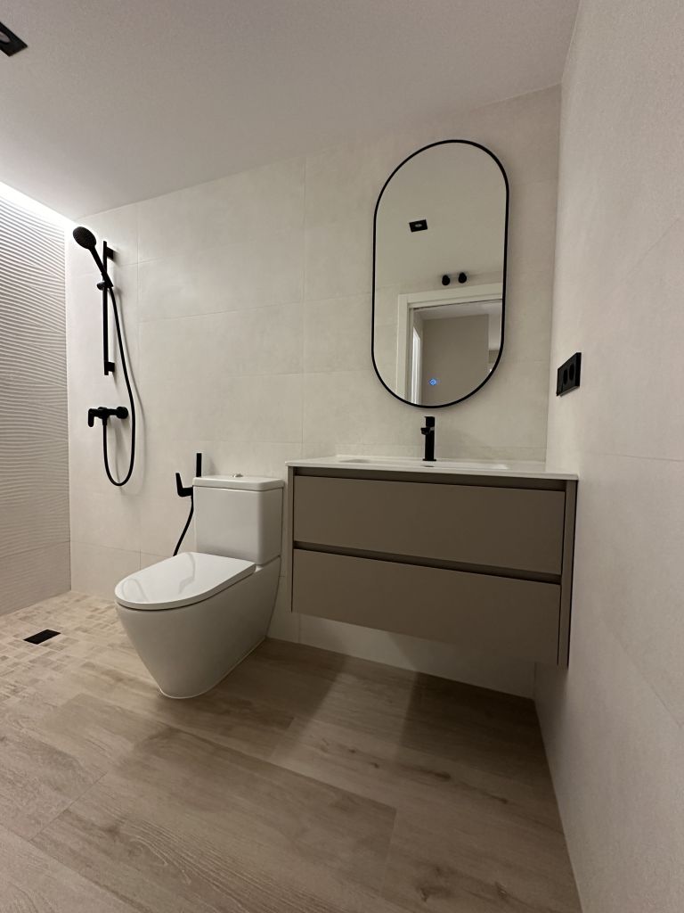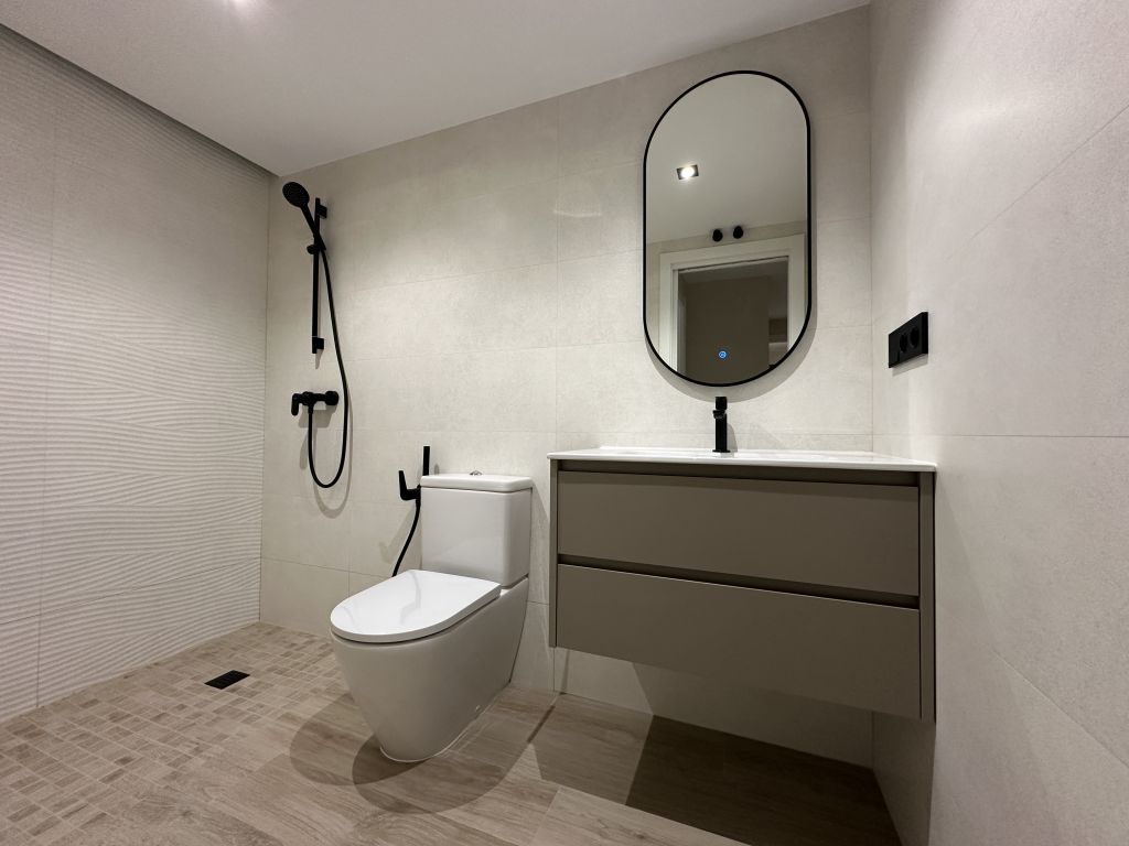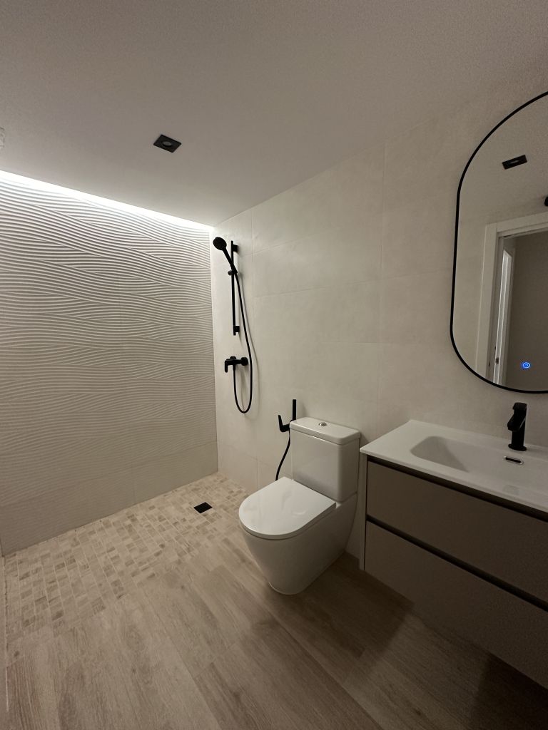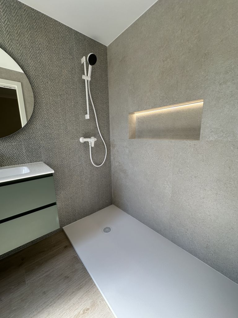 La peculiaridad del baño secundario, es su plato de ducha, ejecutado en obra, enrasado con el resto del solado, para proporcionar mayor accesibilidad.
